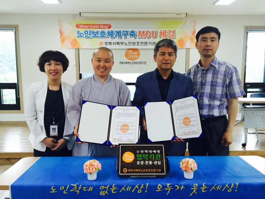 2015³â 6¿ù 18ÀÏ (¸ñ) ¿ÀÈÄ2½Ã¿¡¼ °æºÏ¼ºÏºÎ³ëÀκ¸È£Àü¹®±â°ü 2Ãþ ÇÁ·Î±×·¥½Ç¿¡¼ ¾Èµ¿½ÃÀå¾ÖÀÎÁ¾ÇÕº¹Áö°ü, °æºÏ¼ºÏºÎ³ëÀκ¸È£Àü¹®ÀÌ »çȸº¹Áö À¯°ü±â°ü°ú Çù·ÂÀû °ü°è¸¦ Çü¼ºÇÏ¿© ³ëÀÎÇд뿡 ´ëÇÑ ÀÌÇØ¿Í °ü½ÉÀ» ³ôÀ̰í, ÇÇÇдë³ëÀΰú °¡Á·±¸¼º¿ø ±×¸®°í ÇдëÇàÀ§ÀÚÀÇ Æ¯¼º¿¡ µû¸¥ ¼ºñ½º Á¦°ø, ¿¬°è, ÀÇ·Ú¸¦ ÅëÇØ ³ëÀÎÀå¾ÖÀÎÀÇ ÇÐ´ë ¹®Á¦ÇØ°á °¡´É¼ºÀ» ³ôÀ̱â À§ÇÏ¿© Çù¾àÀ» ½Ç½ÃÇÏ¿´½À´Ï´Ù