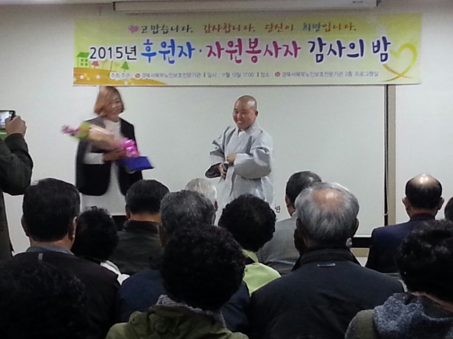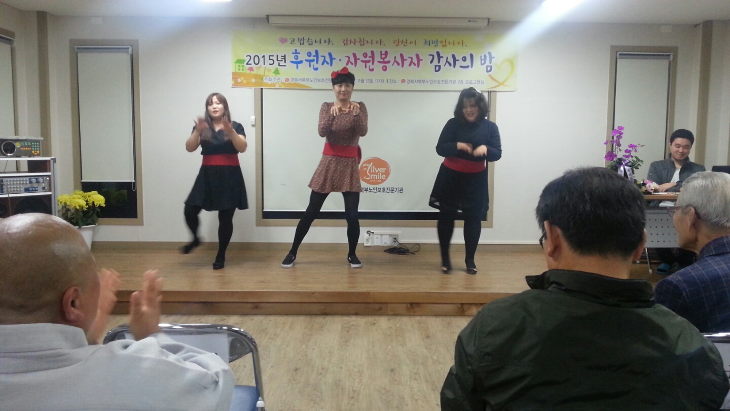 2015³â 11¿ù 13ÀÏ ¿ÀÈÄ5½ÃºÎÅÍ 8½Ã±îÁö °æºÏ¼ºÏºÎ³ëÀκ¸È£Àü¹®±â°ü¿¡¼ ÀÚ¿øºÀ»çÀÚ ¹× ÈÄ¿øÀÚµéÀ» À§ÇÑ °¨»çÀǹã Çà»ç¸¦ ÁøÇàÇÏ¿´½À´Ï´Ù.