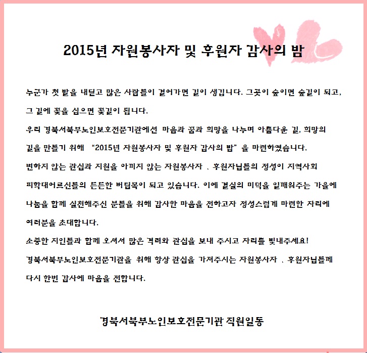 [ä¿ë°ø°í] 2015 ÀÚ¿øºÀ»çÀÚ ¹× ÈÄ¿øÀÚ °¨»çÀǹãÀ¸·Î ÃÊ´ëÇÕ´Ï´Ù